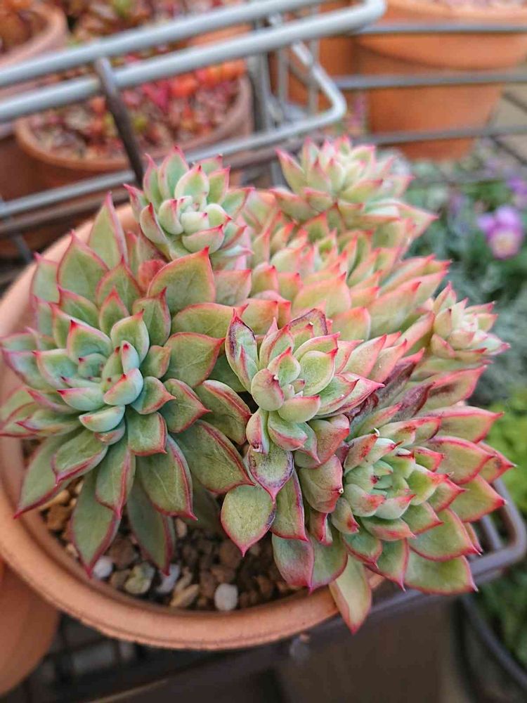 こんにちは😊🌱もりもりで可愛らしかったのですが、赤くなってきて更に可愛いです😉💕多肉植物は似たようなのが多くて名札がないと名前は何だろう??と迷います😆🌱