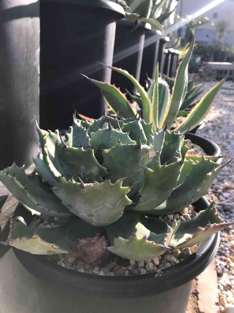 詳しいことは分からないんですけど雷帝もカブトガニも学名は同じアガベ イシスメンシスらしいので兄弟種のようなものかもしれないですね( ¯﹀¯ )