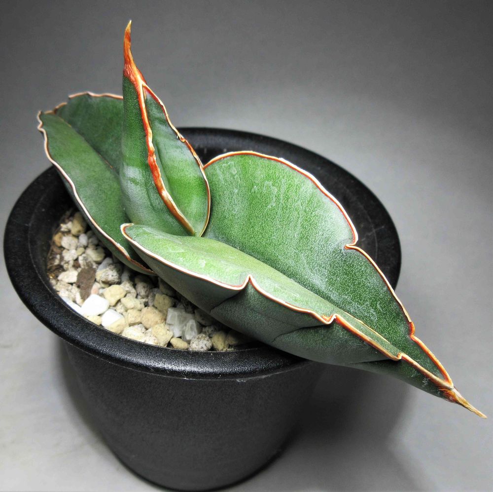 鉢と株の大きさが合ってないのかなー??一番下の葉が鉢に当たって傾くようなんですが、鉢の径を小さくすれば収まりが良くてもアタマが重くて倒れそうだし、大きくすれば不釣り合いな感じだし、どうしましょうかね??