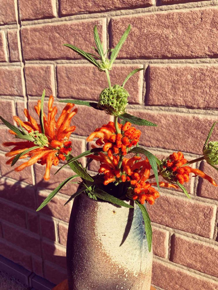 花はフェルトみたいにモフモフしてます。オレンジ色🧡のちょっと不思議なお花💐