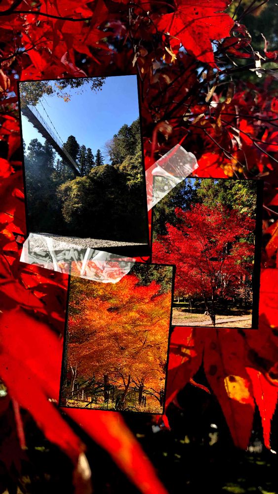萌えるような紅葉🍁吊橋渡って遊歩道に