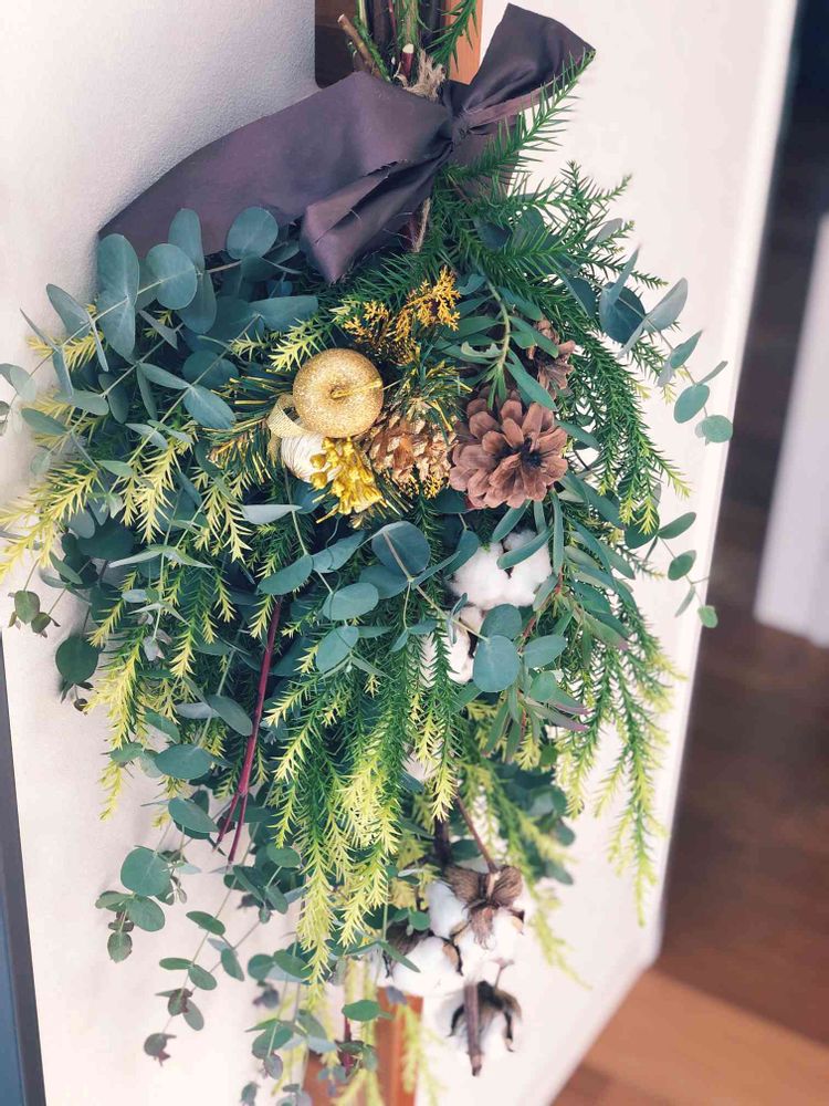 素敵なスワッグですね🤎こんな風に作ってみたい!ユーカリや松ぼっくりなどとっても可愛いです🎄✨