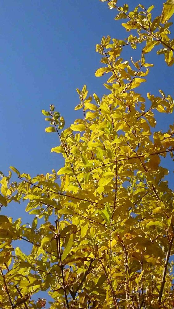 ザクロの黄色は、レモンイエローのような澄んだ黄色で、秋の青空に、スッゴく映えます。