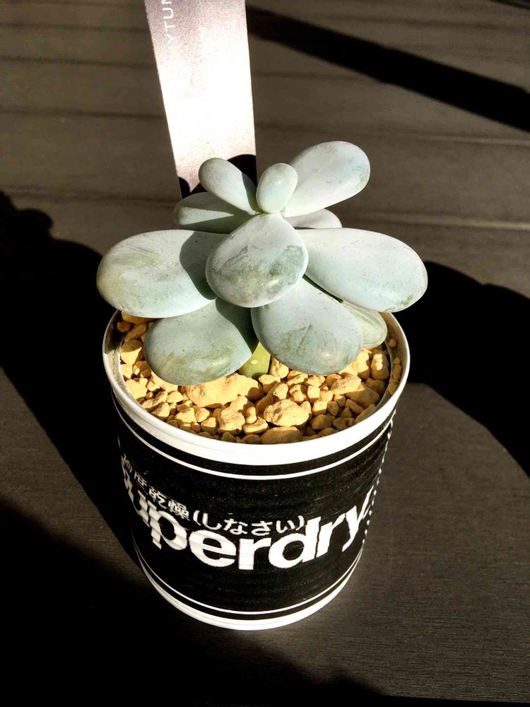 プランツショップで買ったけど…ムチムチ感足りない気がするです。他の多肉は外にいたのにこの方だけハオルチアと一緒に室内。