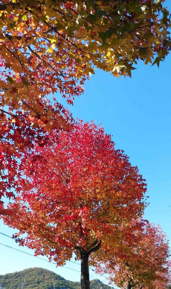 見上げれば美しい青空に紅葉🍁✨✨✨