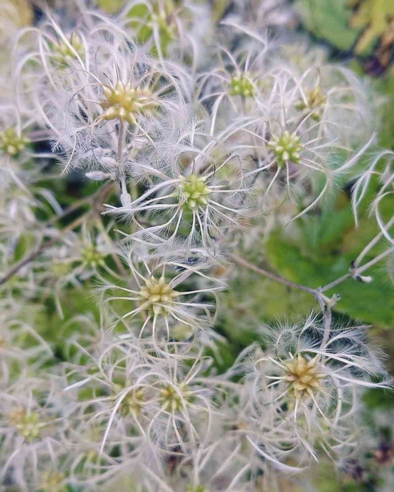 キンポウゲ科センニンソウ属の多年草。山地の草原や林縁などに生える。茎の下は木質化して冬も残る。葉は対生し長柄ある3出複葉で粗い鋸歯がある。小葉は卵形で3浅裂し先は尖る。花期は8~10月。雌雄異株でふつう雄花のほうが大きい。茎の先端な葉腋に集散状に多数の花を下向きにつける。花弁状の萼片4個は淡紫色の狭鐘形で、開花後に先が反り返る。花の色には濃淡があり、花や花柄には白く見えるほど絹毛が密生する。果実は痩果で長さ3㎜ほどの倒卵形や楕円形。花は下向きにつくが果実は上を向く。痩果に残る花柱は長さ1.5㎝ほどで羽毛状になる。また、痩果の果皮にも伏毛が生える。