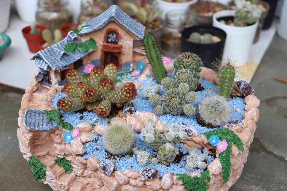父の日に、長男からプレゼントの寄植ポットを使ってみました。ウ-ン~🤔イマイチ!センス無し😂