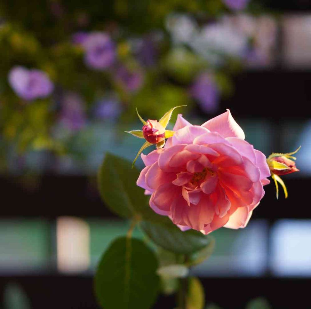 南向きベランダ、秋の夕暮れは植物に後光がさします🌹🌸☀️