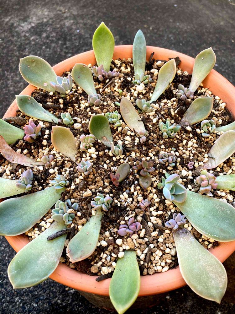 葉挿しさんの少し大きくなってきた子達を大きめの鉢に寄せてみました😊