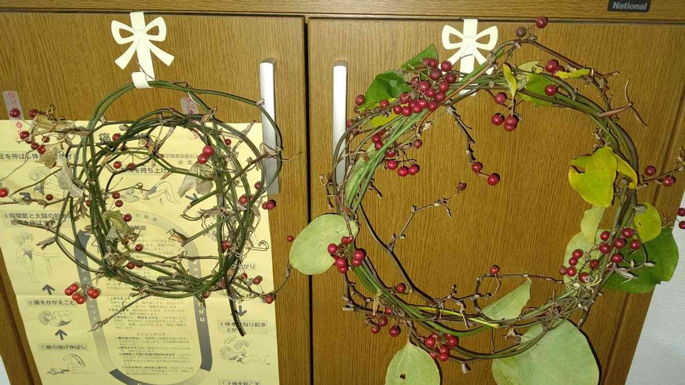 サンキライ車の中から、よく見つけましたね😊実が大きく赤くてリースにピッタリですよね👍