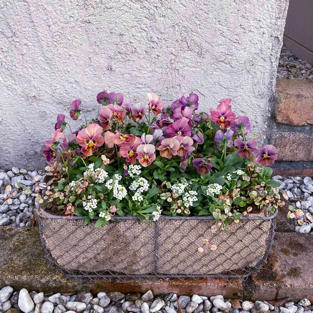 華もみじさんの ビオラしんしんとアリッサム スポットライトを使った寄せ植えに一目惚れして真似っ子してみました🙈