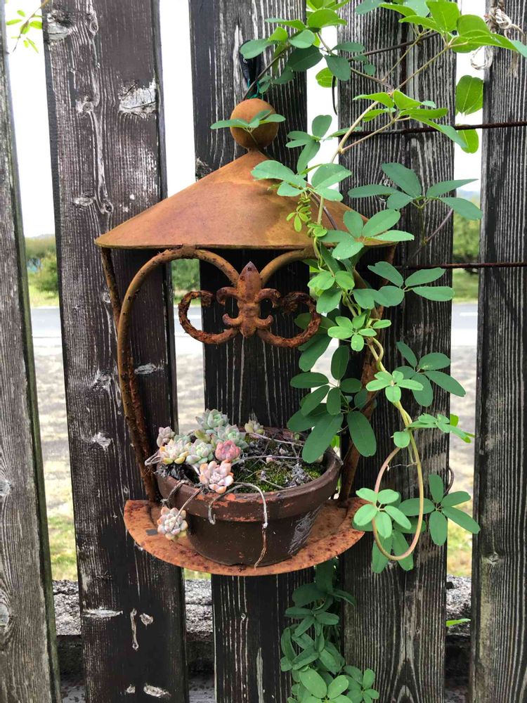 ♪アケビのつる可愛いので山から取ってきて庭に植えてたら年々凄い繁殖してます😂お花もとっても可愛いですよ😊👍
