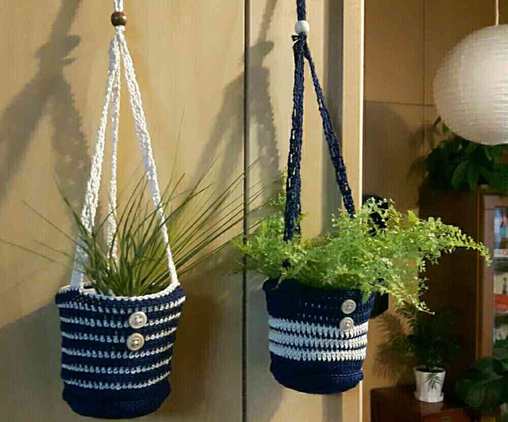 ニットのハンギング鉢カバーが