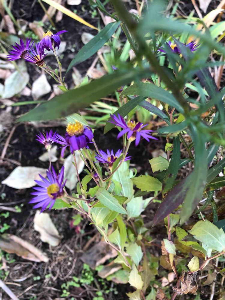 孔雀草な横に、野紺菊を植えました。花は、似ているけど葉が全然違うねー😊 この花は、スッキリしたスマートな、美人でしょう✌️