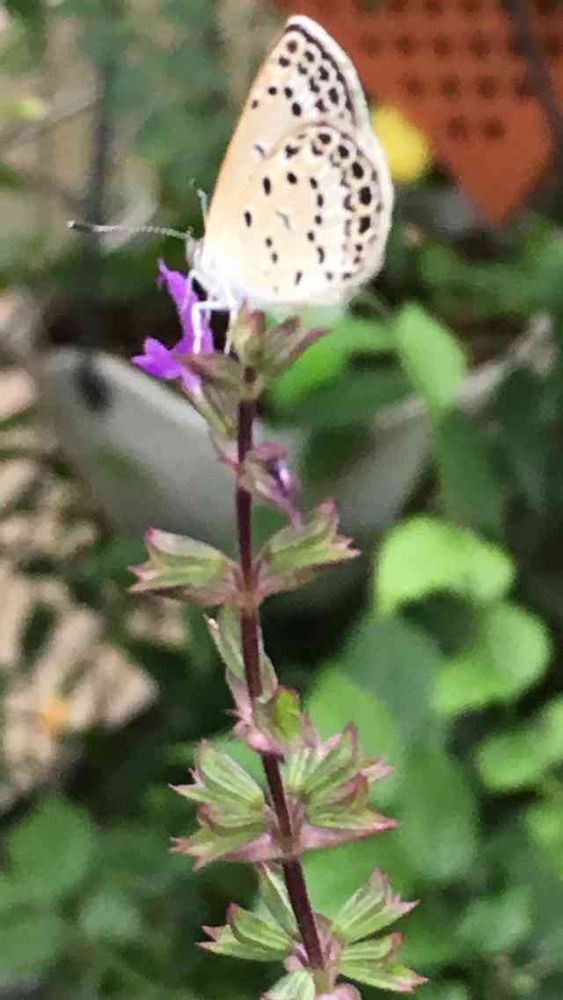 サルビア、ネモローザ、カラドンナにシジミチョウさんが╰(*´︶`*)╯♡