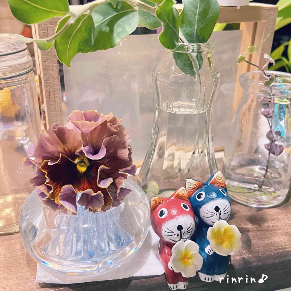 お花は、前にぼんぼんさんに検索したらプードル(だったっけ?)に似てるって言われたパンジーさんです😊