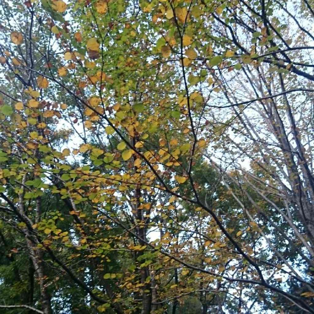 紅葉🍁を探して歩いた林の中で、甘い香りに見上げると丸い💛の形の葉っぱ🌿のカツラの木が、少し黄葉していました。