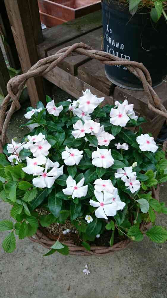 久しぶりに籐のカゴにビンカ“ミルキーポッポ”を植えてみました!