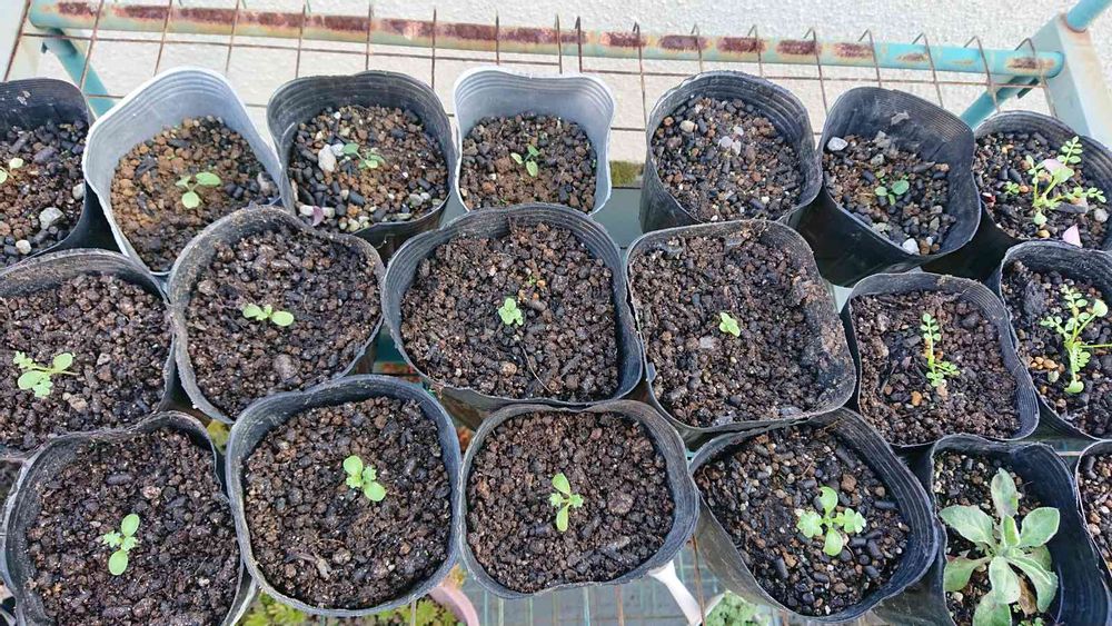 種蒔きっ子とこぼれ種っ子をポット上げしました。