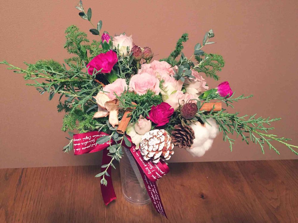 うわあ、とっても素敵なアレンジメント(//∇//)松ぼっくりが冬っぽくて良いですねえ♥娘さんと、なんて良いですね♥