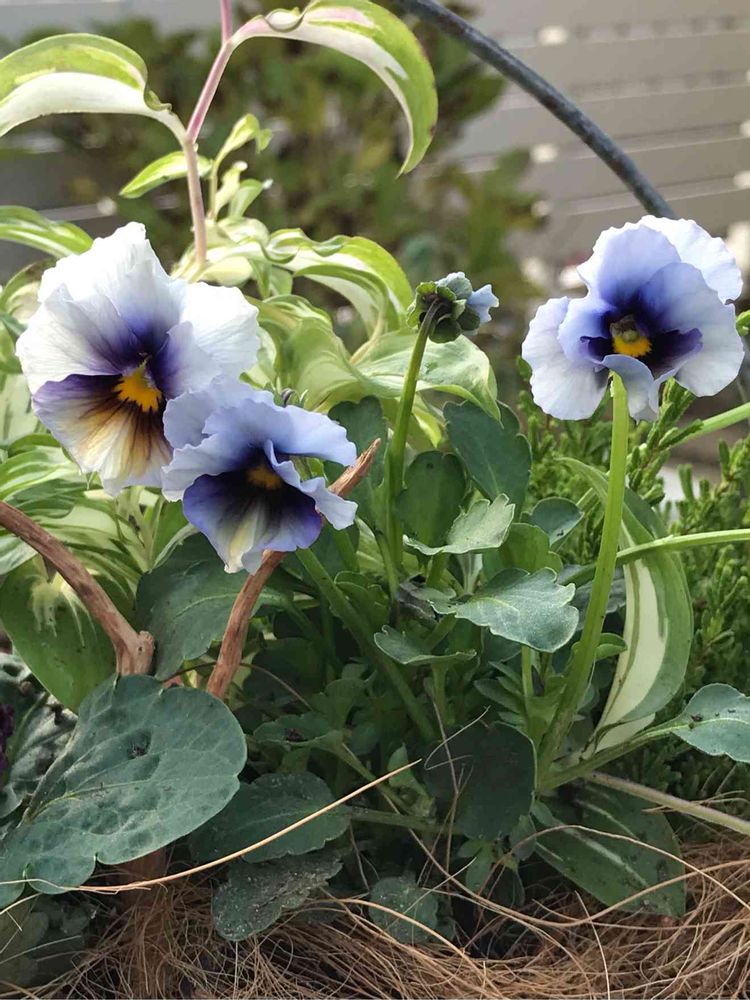 車で遠出してお隣の街へ。お花屋さんで、パンジービオラを三株ゲット。帰る途中のパーキングエリアで、地酒とヤマメの炭火焼き、ウニのおこわも買って、イベントのくじ引きで、四等賞の冷麺まで引き当てて、昨日はすごーく、いい日でした。で、一つ目のビオラです。ちょっといいでしょ?💕