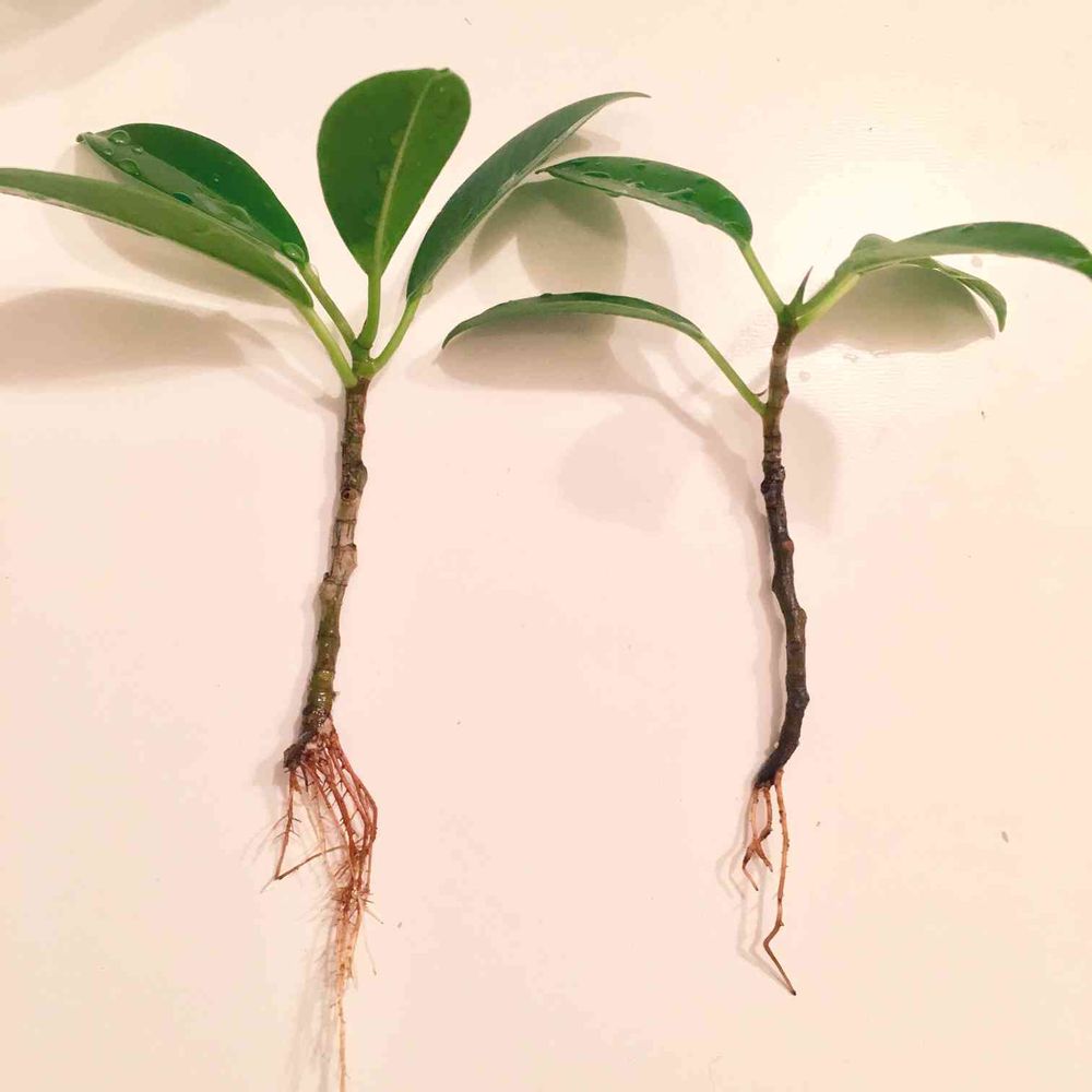 左:水に挿してたやつ。右:土に植えてたやつ。