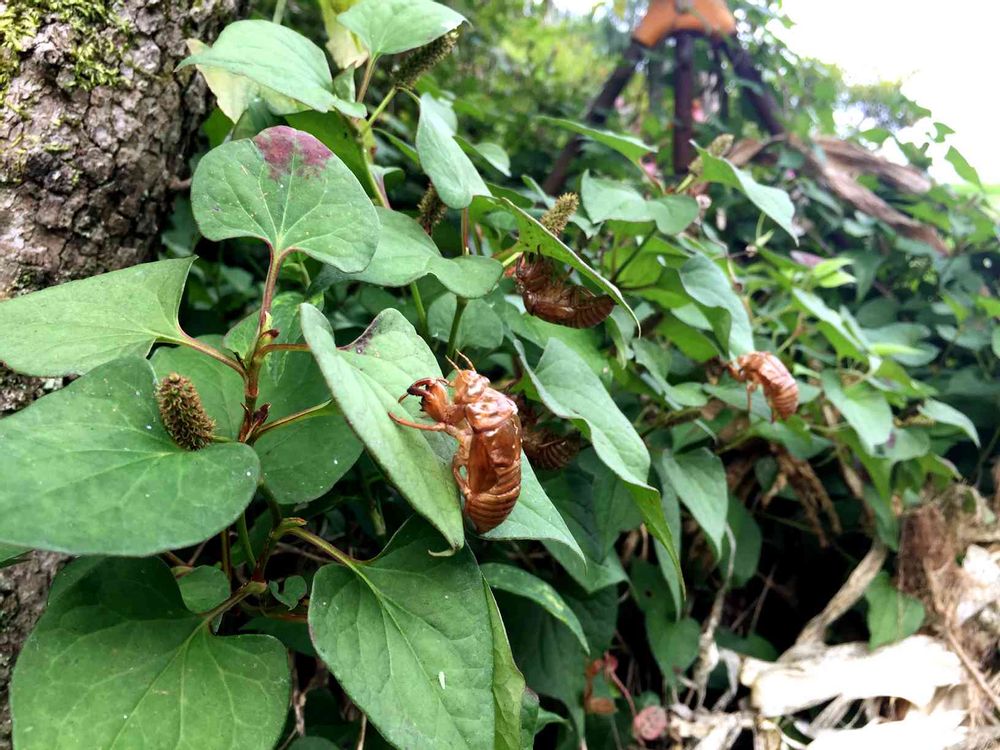 畑のお手伝いでセミのぬけがらが沢山ついてました