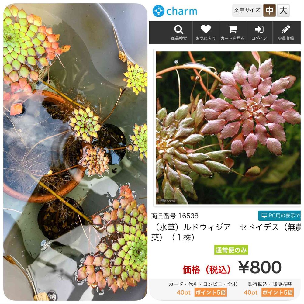アカバナ科(Onagraceae)の植物。ヒシのような浮葉を持ち、強光下で真っ赤に染まり菱形の葉が整然と並んで描く円は大変綺麗なルドウィジアの仲間です。