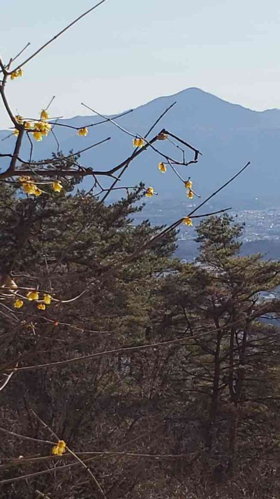 今日のお花ロウバイ(蝋梅)と秩父の名峰武甲山