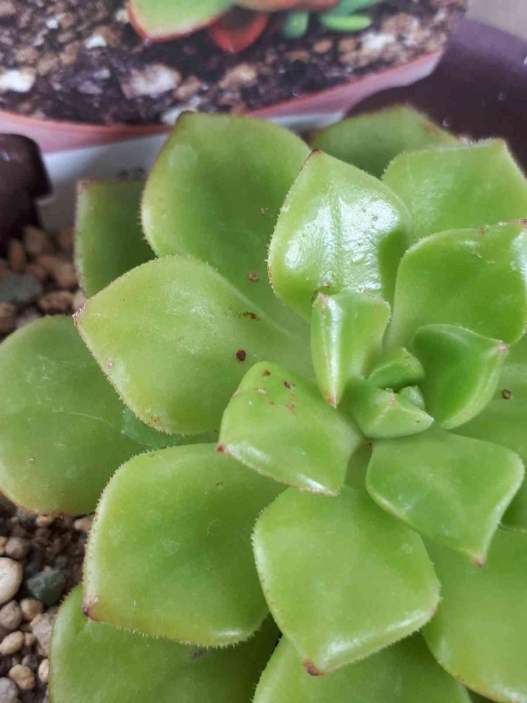 確かに…大雨で、多肉を置いている軒下まで雨が打ち込んだ後に茶色い点を発見しました💦他の多肉と離して、別の場所に置いて様子を見ている最中です。茶色い点が増えていくのかどうか…確認していきたいと思います。ていねいに回答していただき ありがとうございました(*´ `)