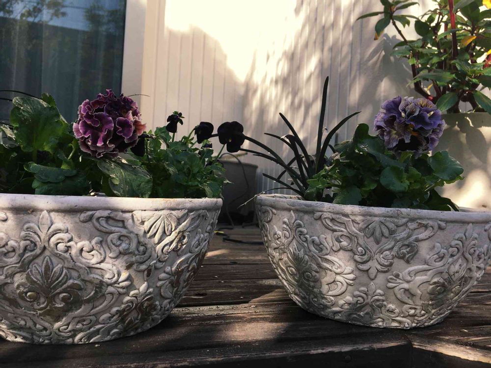 初ドラキュラ。この子達のためにプランターを選びました。黒系で寄せ植え。