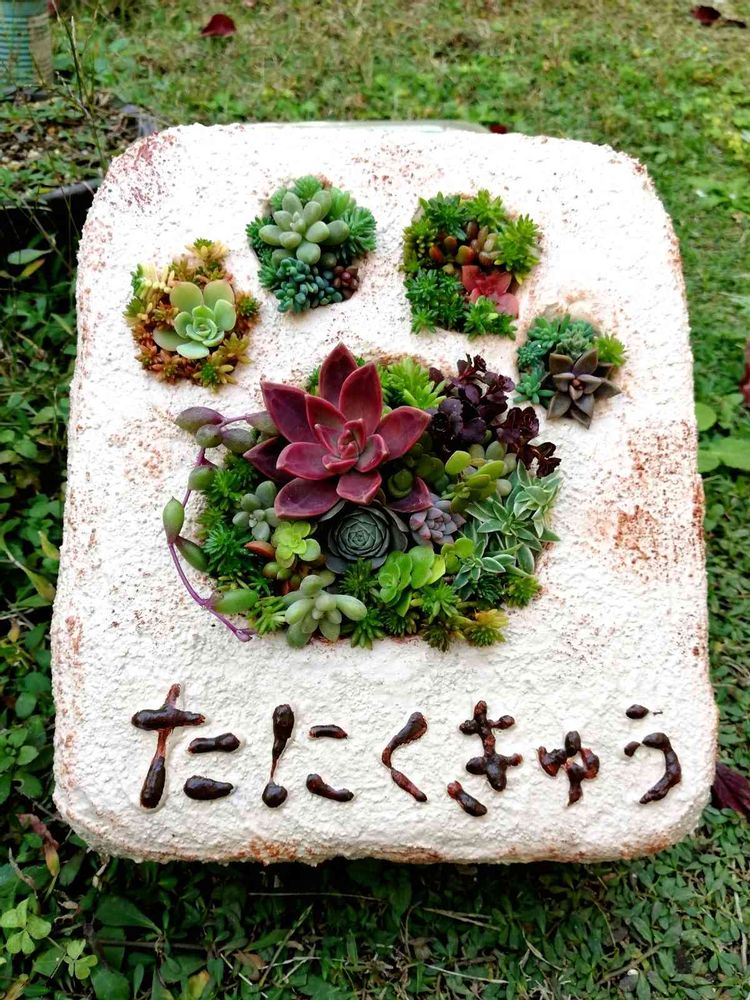 11/8投稿から自己流モルタルたにくきゅう🐾鉢に 寄せ植え完成➰🎶