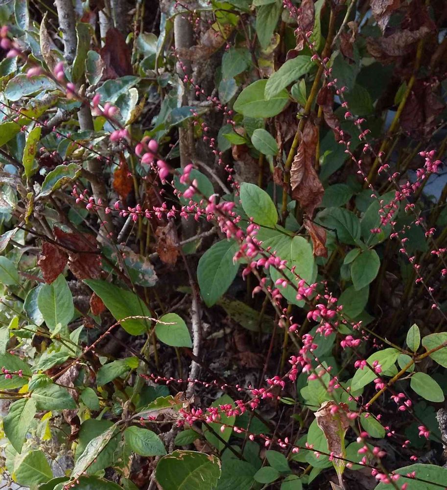 緑の生垣の中に、水引の赤が綺麗です😊❣️
