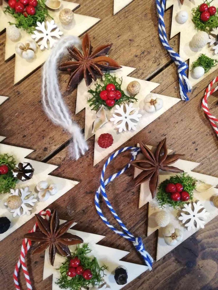 毎年作っている小さなツリーに木の実等をつけたオーナメント💖