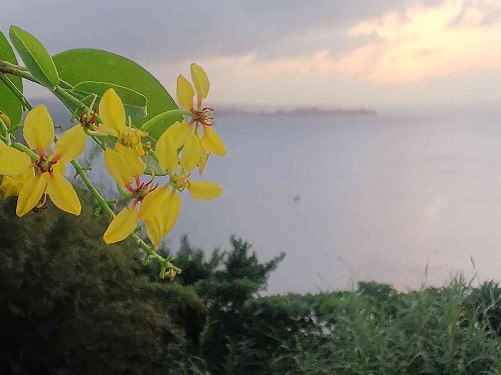 沖縄県以南から東南アジア、オーストラリアそれにニューカレドニアに分布しています。マングローブの林や海岸に生え、蔓性で他の樹木に巻きついて伸びます。葉は卵形から披針形で対生し、光沢があります。茎の先端に総状花序をだし、鮮やかな黄色い花を咲かせます。温度さえあれば、周年開花します。キントラノオ科コウシュンカズラ属の常緑低木で、学名は Tristellateia australasiae。英名は Vining milkweed, Maiden's jealousy。