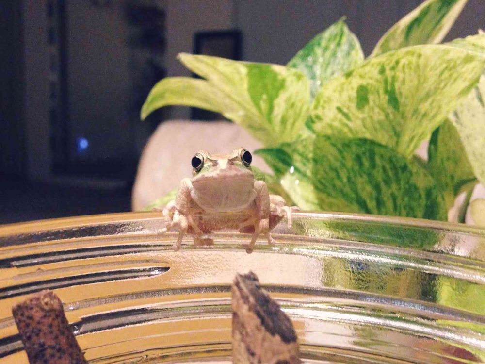 息子が捕まえてきて、飼ってるんです🐸餌やりさえクリアできたら可愛いですよー😍