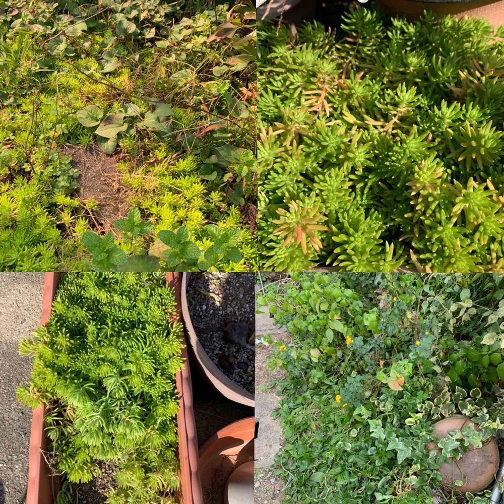 綺麗な庭とは言いがたいのですが、我が家の空きスペースには、ベビーサンローズやゴールドビューティ(メキシコマンネングサ)、アイビー、ツルニチニチソウ、ミントなど野生化した植物が『グランドカバー状態』
