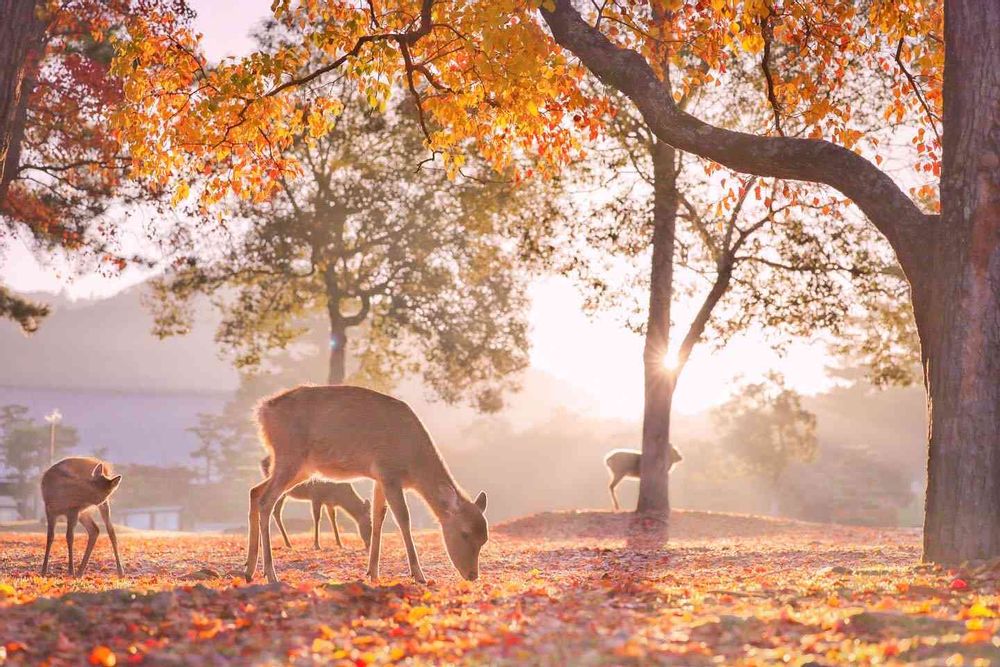 紅葉された景色と朝日の光が綺麗で可愛い鹿達にも癒されます✨✨