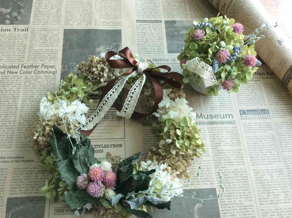 ピンクアナベルのドライは色が茶色っぽいので、グリーンだけの方が綺麗だったかな…😓