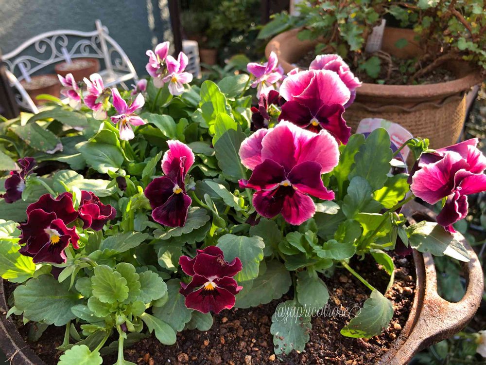 一緒に植えたビオラたちも同じような色で好きな雰囲気なので、モリモリ育つのが楽しみです♪