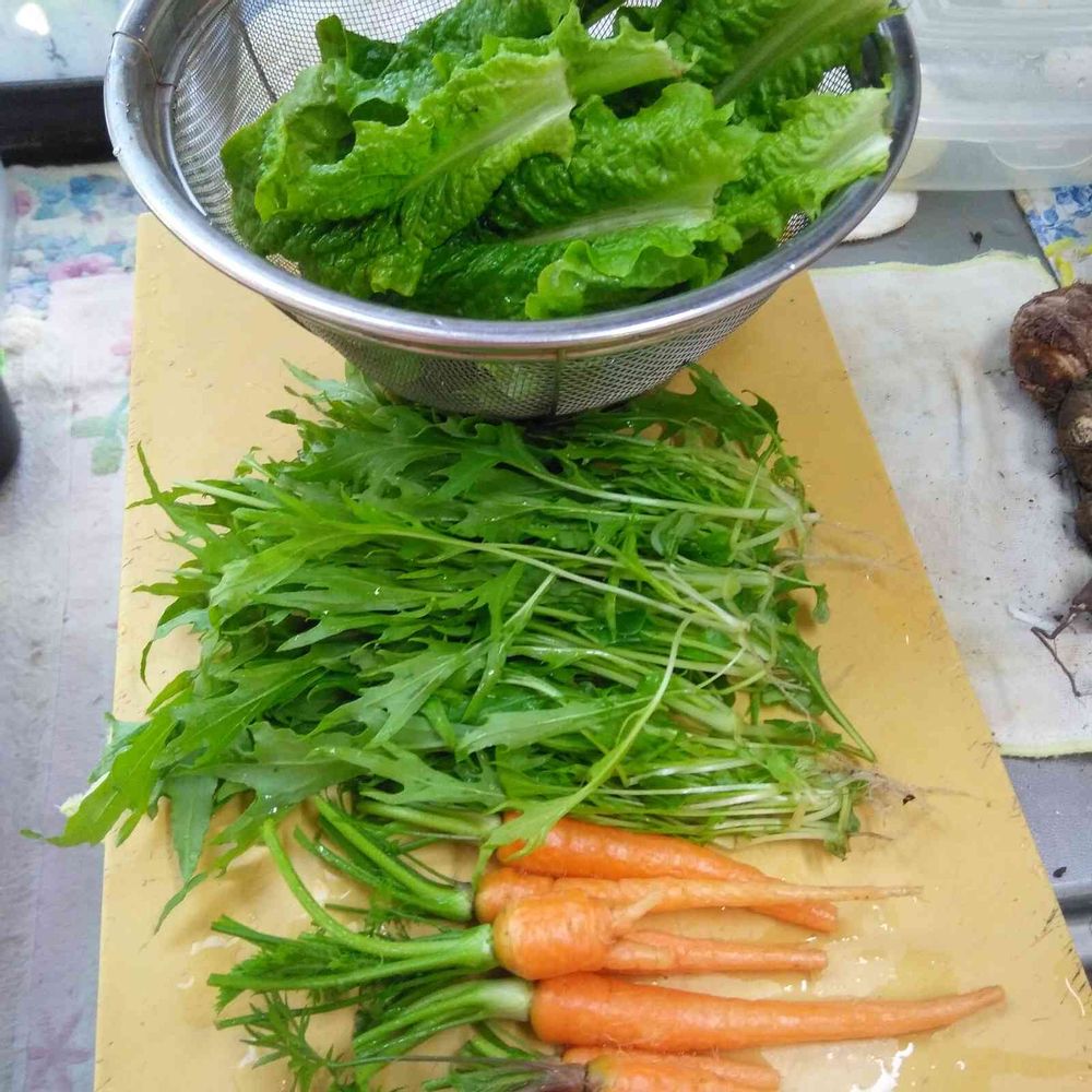 🍀🌱サラダ菜、京水菜、人参の間引き🌱🍀