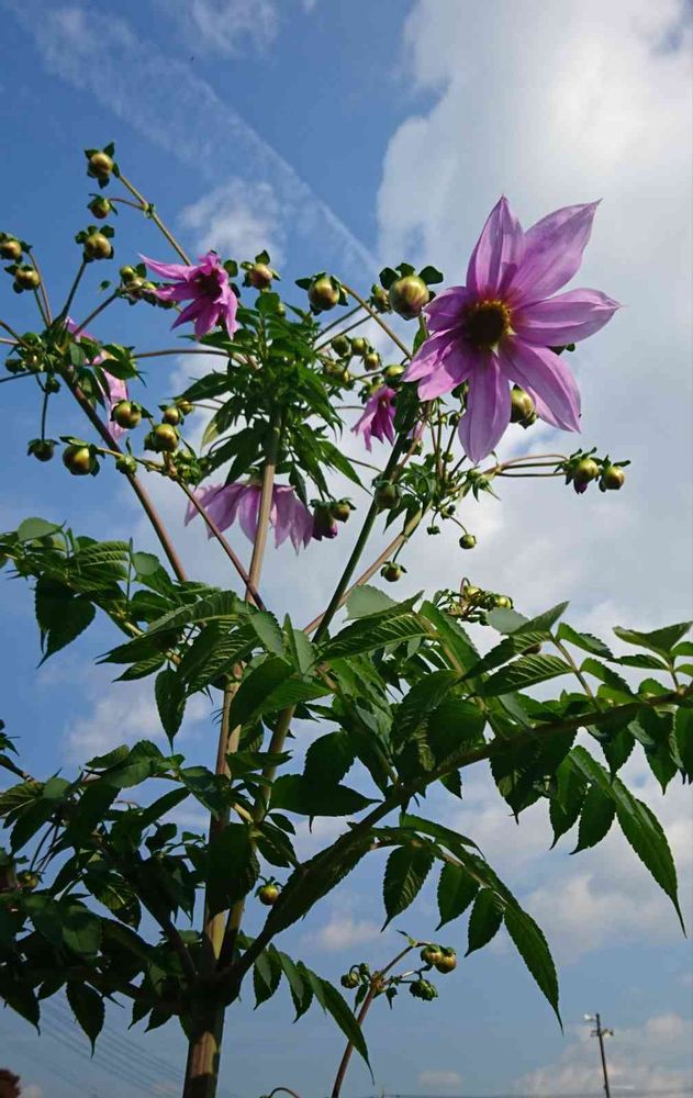 青空に、見事な皇帝ダリアですね。こんな風に育ったら、気持ちがいいですね‼️