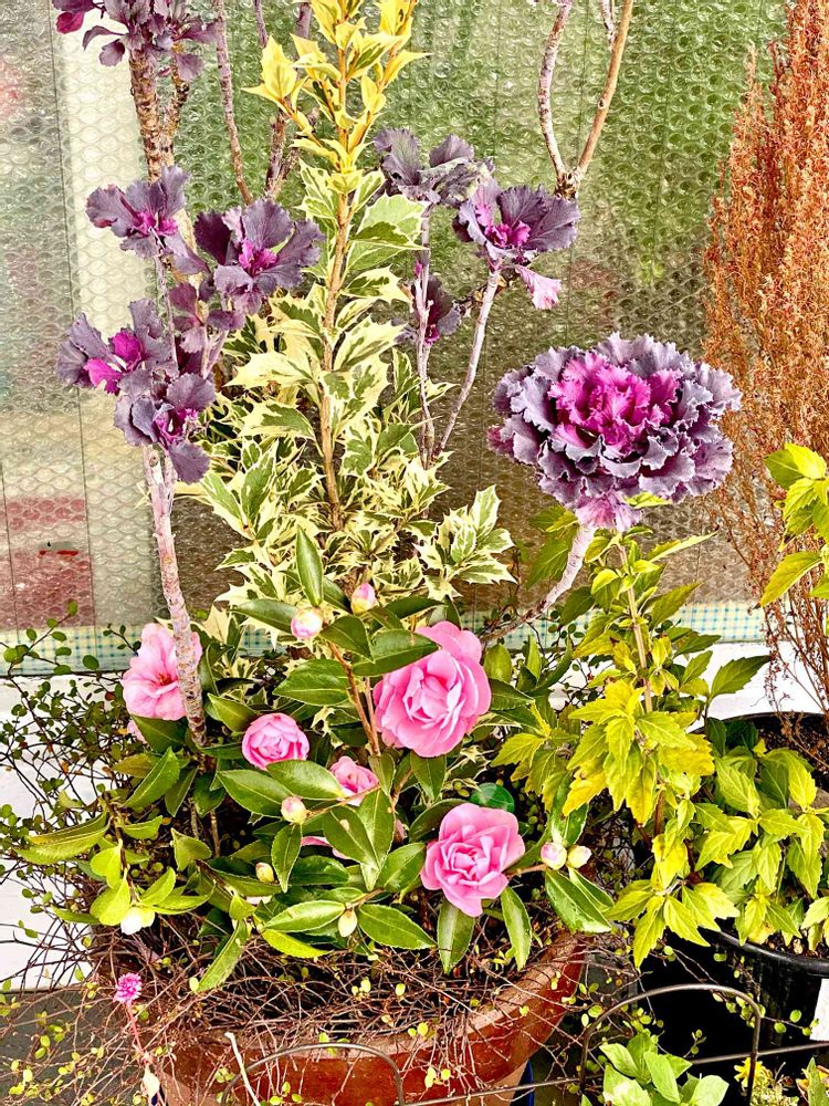 ひとつ前のpicの~道端のサザンカを✂️チョンして、そのまま踊り葉牡丹の鉢に刺しただけ🌀🤣🤣🤣