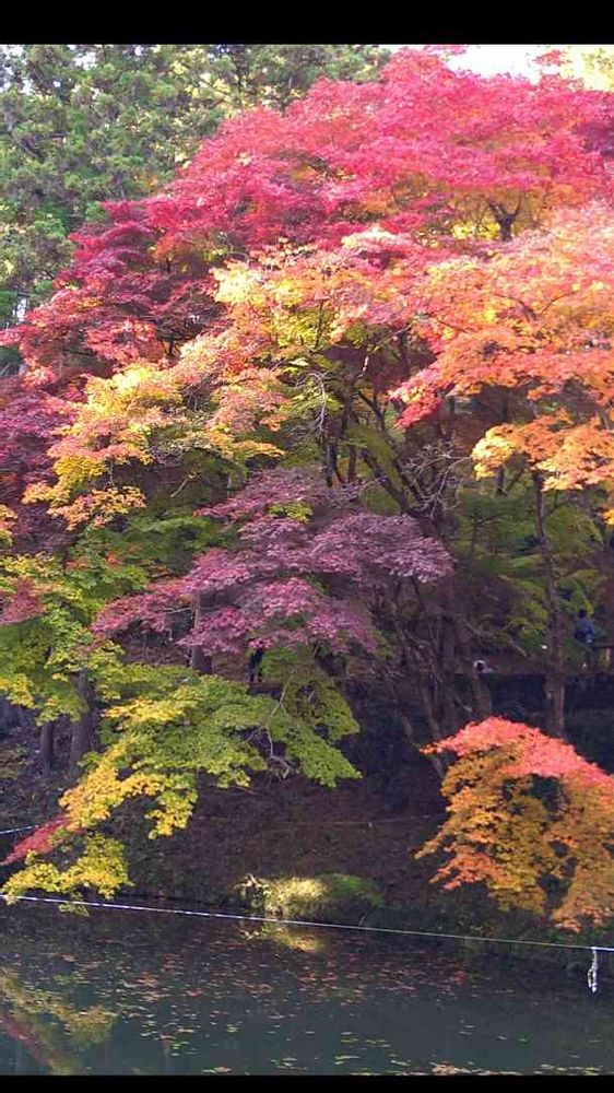 色んな色のグラジュエーション、池の水面に映る紅葉も絶景です🌊✨🍁✨🌊