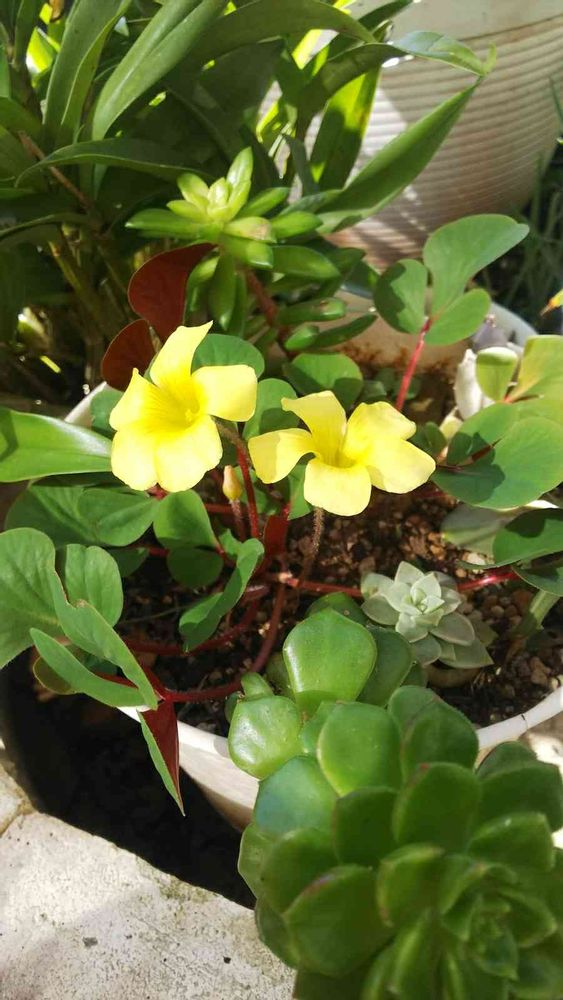 枯れてしまったと思い多肉を一時植えしてたら😅芽が出て咲いていました✨おかげで雑な寄せ植え・・・😆