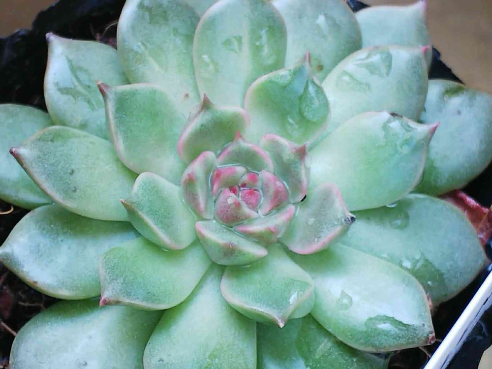 うちの近くの百均にはラブリーローズもチワワエンシスもリトープスもいないよ!!(´;ω;`)と悲しみつつ、せっかく出向いたダイソーであまり傷んでないエケベリアがあったから、緑緑でかわいさのかけらもないけど仕方なしに買った子。
