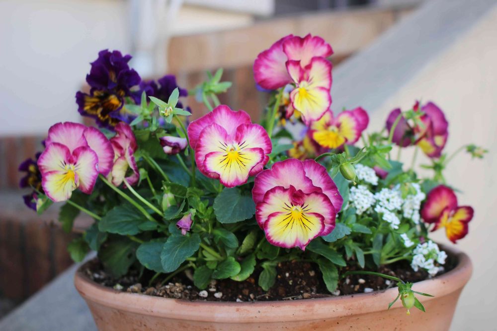 ビオラとアリッサムの寄植えが大好きです🌼