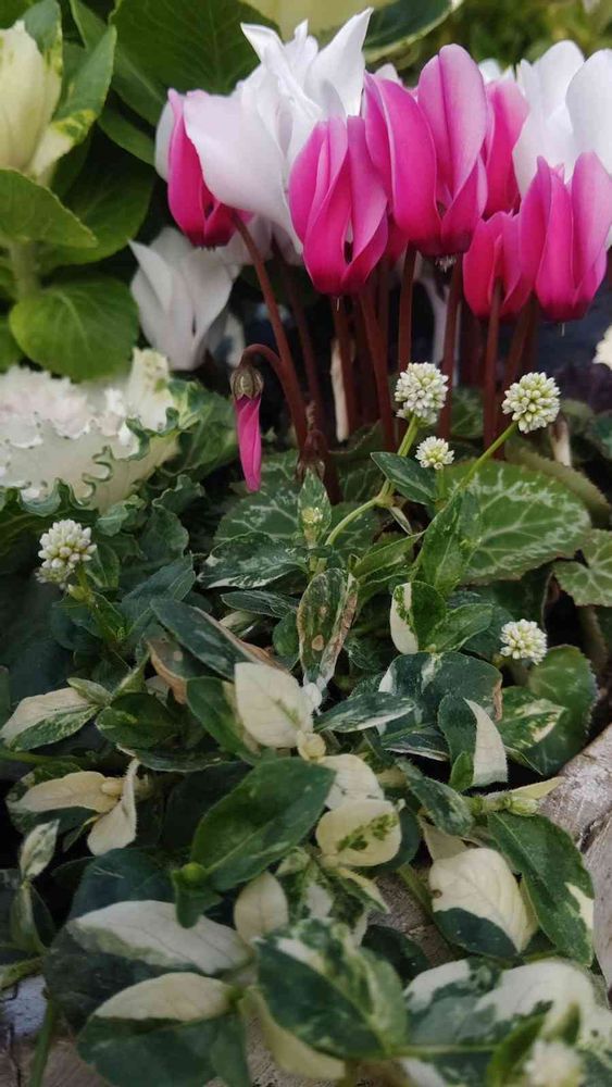 シクラメンと白のポリゴナム、素敵ですね~💕