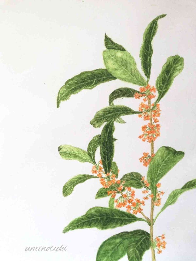 海の月さんのデスク,キンモクセイ,透明水彩の投稿画像