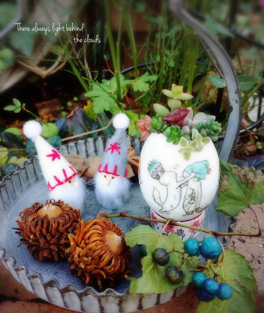 タマカラチャン🥚初めての寄せ植えだったけど、小さい穴にチマチマって感じで難しかったです
